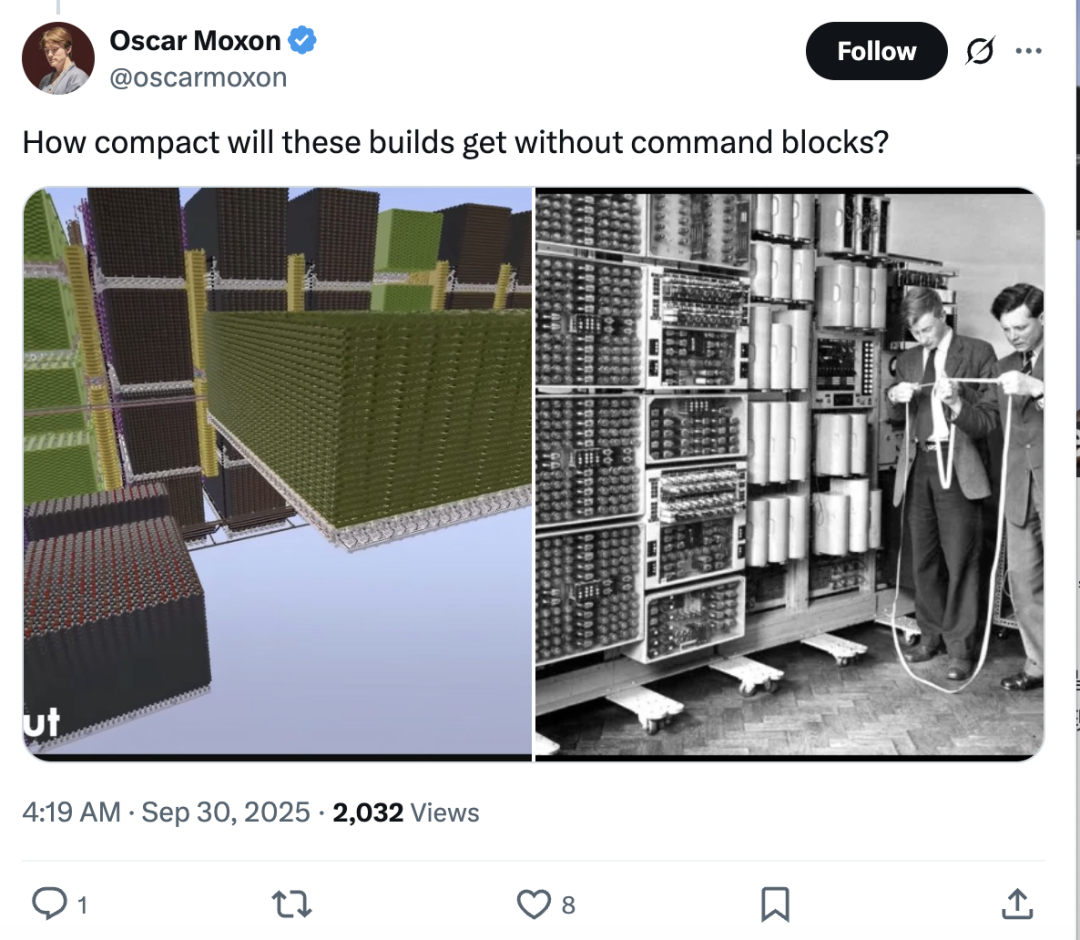 除了这次的手搓GPT以外,sammyuri以及其他网友其实还在《我的世界》里倒腾了不少东西——