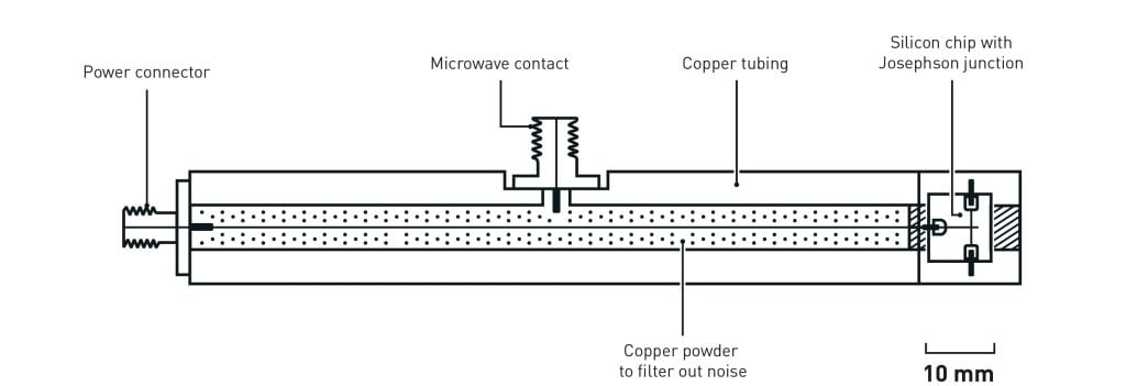 为了测量量子现象,他们向约瑟夫森结注入微弱电流,并测量其两端的电压,该电压与电路的电阻相关。
