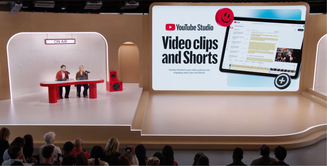 9 月 16 日举行的「Made on YouTube」活动中,YouTube CEO 尼尔·莫汉(Neal Mohan)宣布了一系列全新 AI 工具,其中比较有趣的一项是专为播客创作者打造的音频-视频 AI 生成工具,帮助播客创作者轻松实现播客视频切片制作。