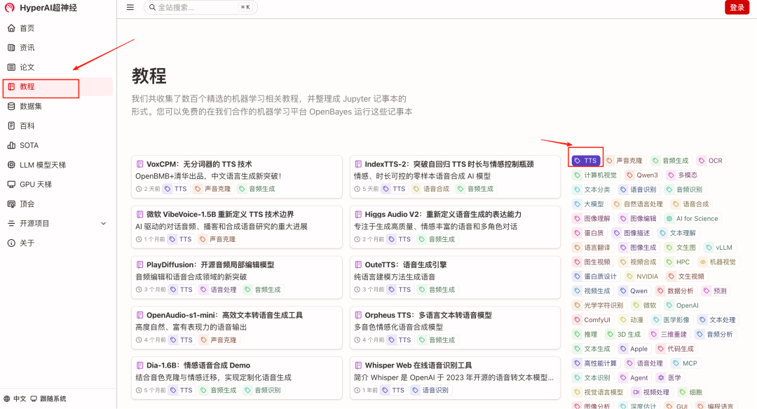 HyperAI超神经官网(hyper.ai)的「教程」板块中上线了多个优质开源 TTS 模型的一键部署教程,欢迎前往体验。