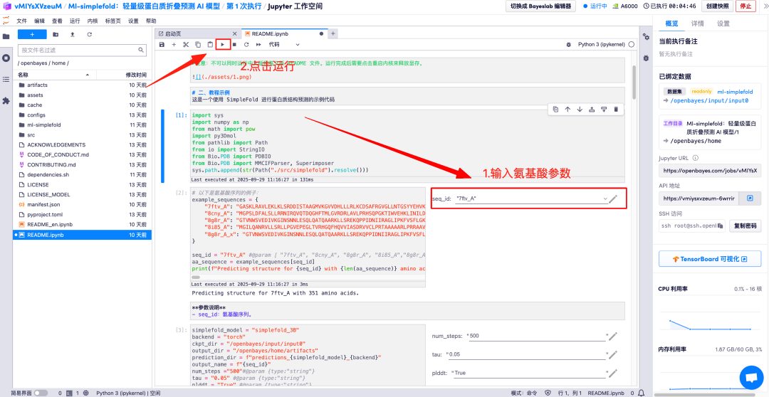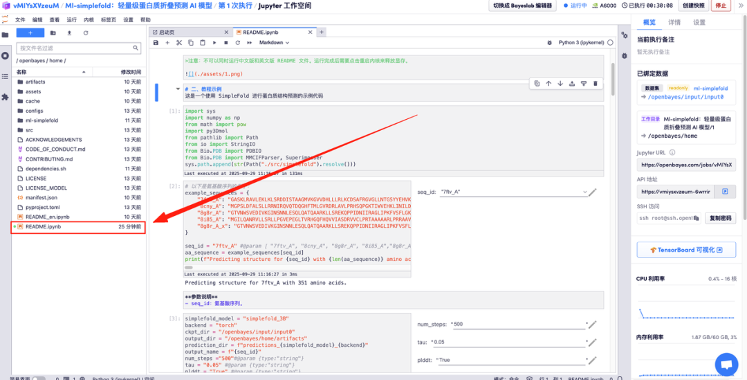 以下为 Ml-simplefold 使用页面,点击「README」即可跳转至生成界面。