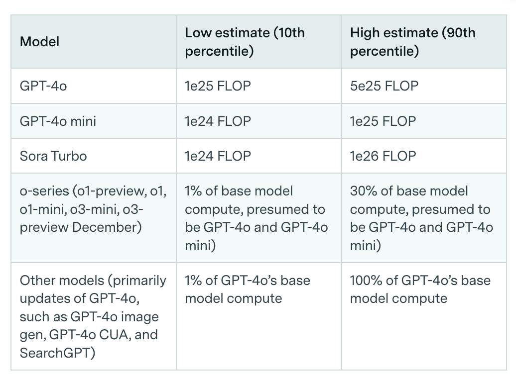 研究人员估算了OpenAI在2024年第二季度到2025年第一季度期间发布或宣布的重要模型(包括GPT-4.5、GPT-4o、o3和Sora Turbo)的训练成本。