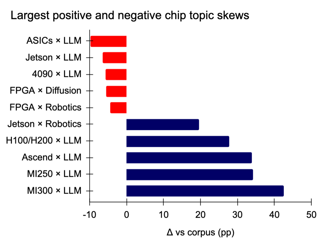 报告特别提到,在明确引用计算硬件的开源 AI 论文中,约 90%都提到了 NVIDIA 的产品,占据绝对的压倒性优势。