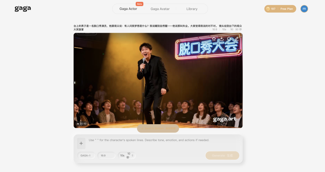 进入Gaga Actor板块,我们就能直接就能用上GAGA-1模型了。