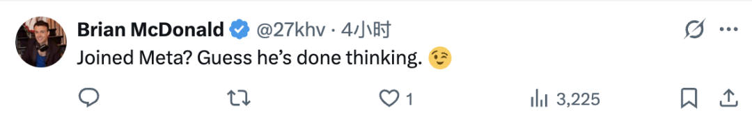 有意思的是,这时Meta挖人的白热化阶段早已过去,内部改组也搞出了一地鸡毛,Tulloch这时选择入职,会是基于一种什么样的考虑?