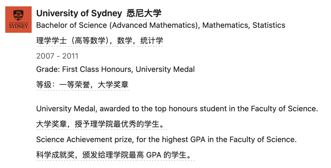 Tulloch来自澳大利亚,2011年本科毕业于悉尼大学,专业是数学与统计学,其间他是悉尼大学理学院最优秀的学生之一,获得过一等荣誉(First Class Honours)和大学奖章(University Medal)。