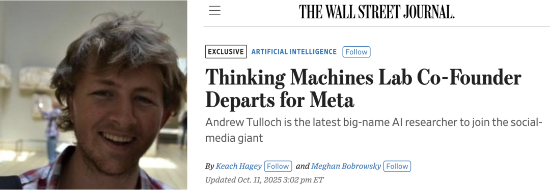 OpenAI前CTO Mira Murati创业公司Thinking Machines Lab证实,联创、首席架构师Andrew Tulloch已经离职去了Meta。