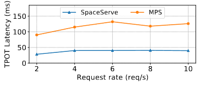 为验证设计有效性,SpaceServe还对比了NVIDIA MPS(Multi-Process Service)方案。结果显示:
