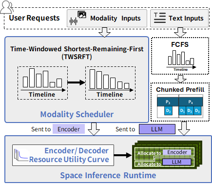 NeurIPS 2025接收论文《SpaceServe: Spatial Multiplexing of Complementary Encoders and Decoders for Multimodal LLMs》提出全新解决方案:空分复用(Space Multiplexing)。