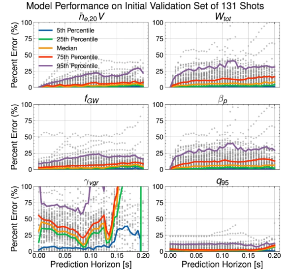 仅凭这些较小规模数据,模型就学会了预测复杂的等离子体动态,并能在单块 A100 GPU 上每秒并行模拟上万条下降轨迹,足以体现其强大的学习与预测能力。