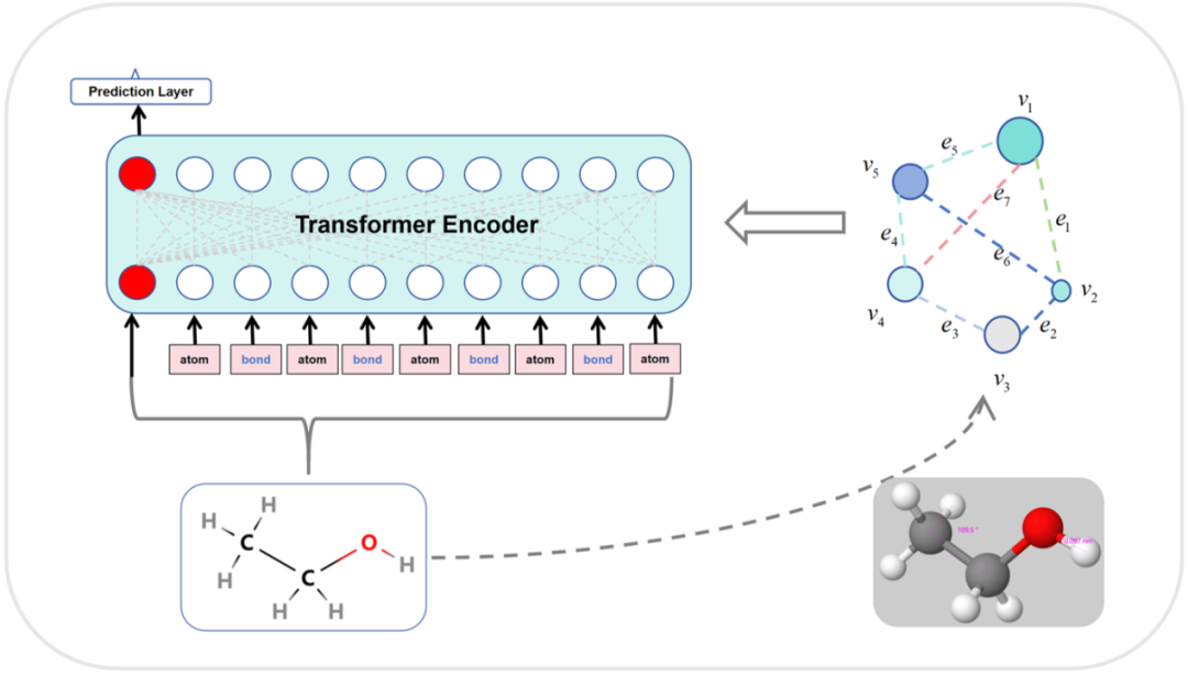 传统药物发现依赖高通量筛选技术,但该方法成本高、效率低,严重制约新药研发进程。随着计算技术的发展,虚拟筛选成为加速药物发现的重要手段,其中分子性质预测模型是核心工具之一。早期方法多依赖人工设计的分子指纹或描述符,存在特征工程复杂、泛化能力弱等问题。近年来,深度学习模型如RNN、CNN和GNN被广泛应用于分子表征,但受限于标注数据不足,模型性能仍有提升空间。BERT模型因其自监督预训练机制和双向注意力结构,在分子性质预测中展现出良好性能。然而,现有的BERT类模型多数是基于分子的二维结构开发的,忽略了三维构象对于分子发挥活性的重要性。