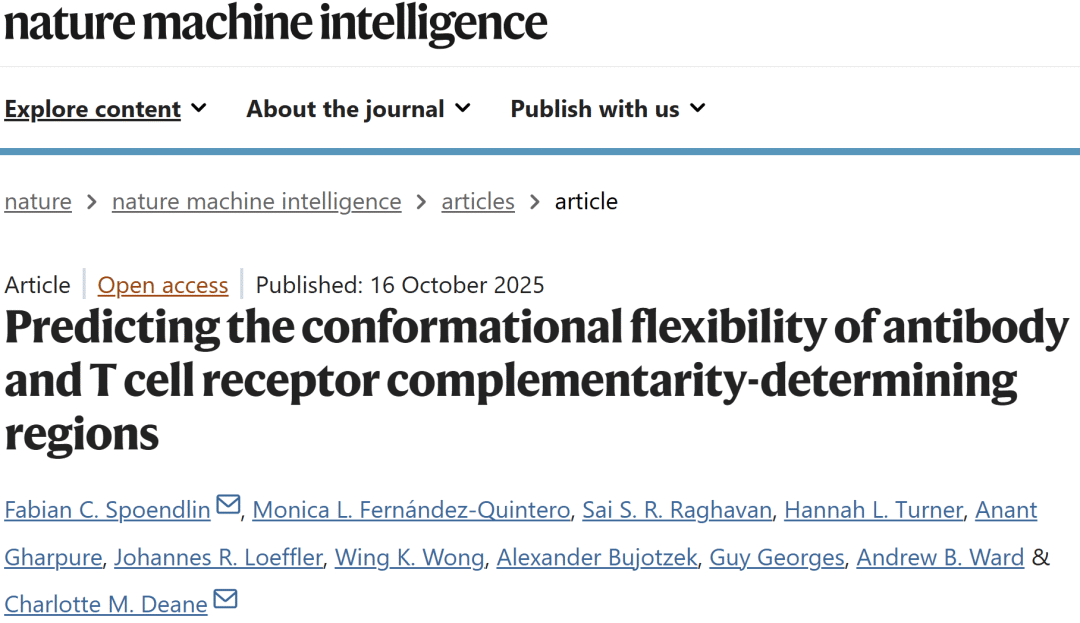 Spoendlin, F.C., Fernández-Quintero, M.L., Raghavan, S.S.R. et al. Predicting the conformational flexibility of antibody and T cell receptor complementarity-determining regions. Nat Mach Intell (2025).