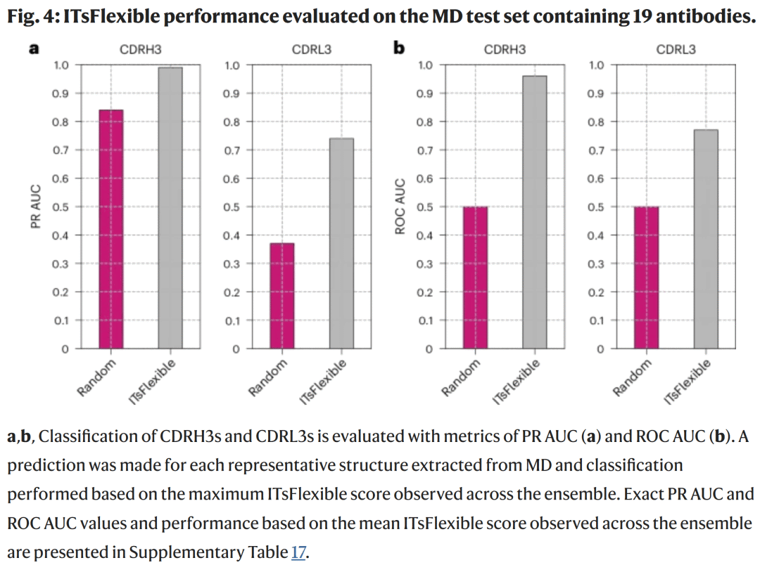 研究人员对 19 个抗体进行了 MD 模拟,独立计算 CDR3 的柔性标签。结果表明: