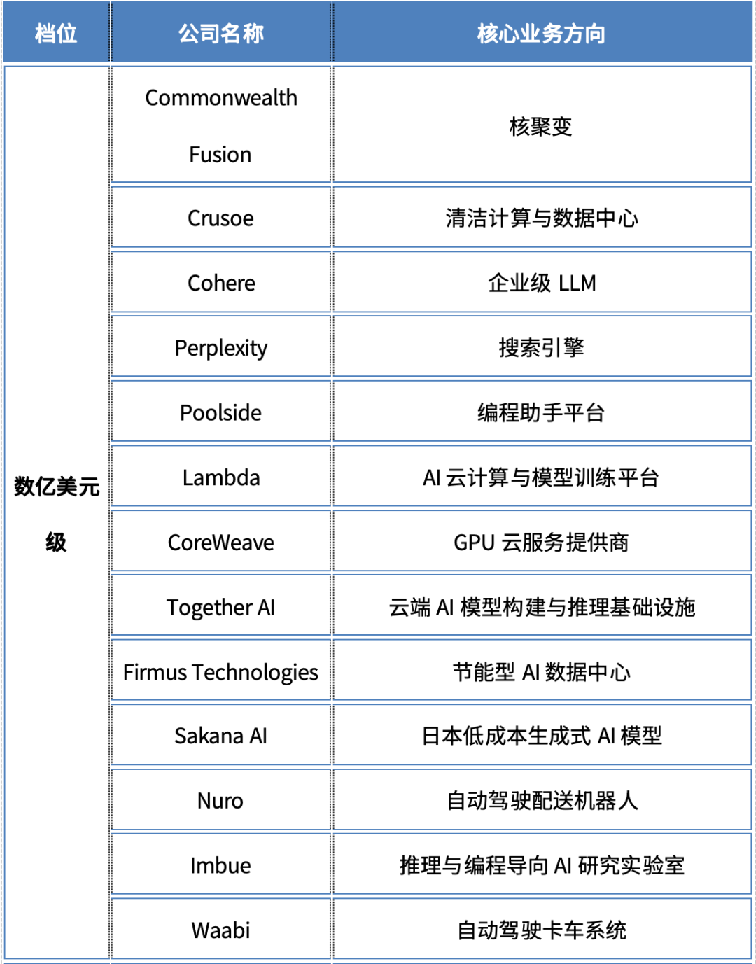 其中,做数据中心、计算等AI基础设施的公司和模型厂商平分秋色,各占了31%,做应用的今年也多了不少,占到了四分之一,其余则投向具身智能与自动驾驶领域。