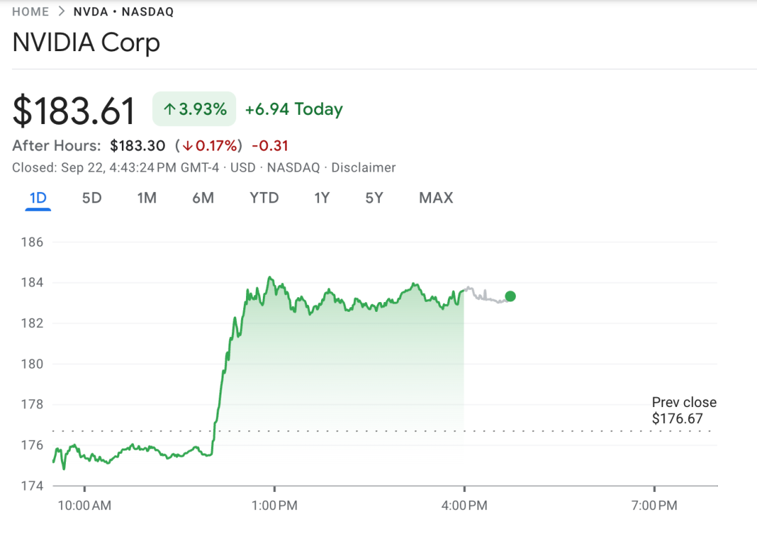 虽然钱还不知道什么时候到位,消息发布当天,英伟达自己的市值先暴涨了1770亿美元。