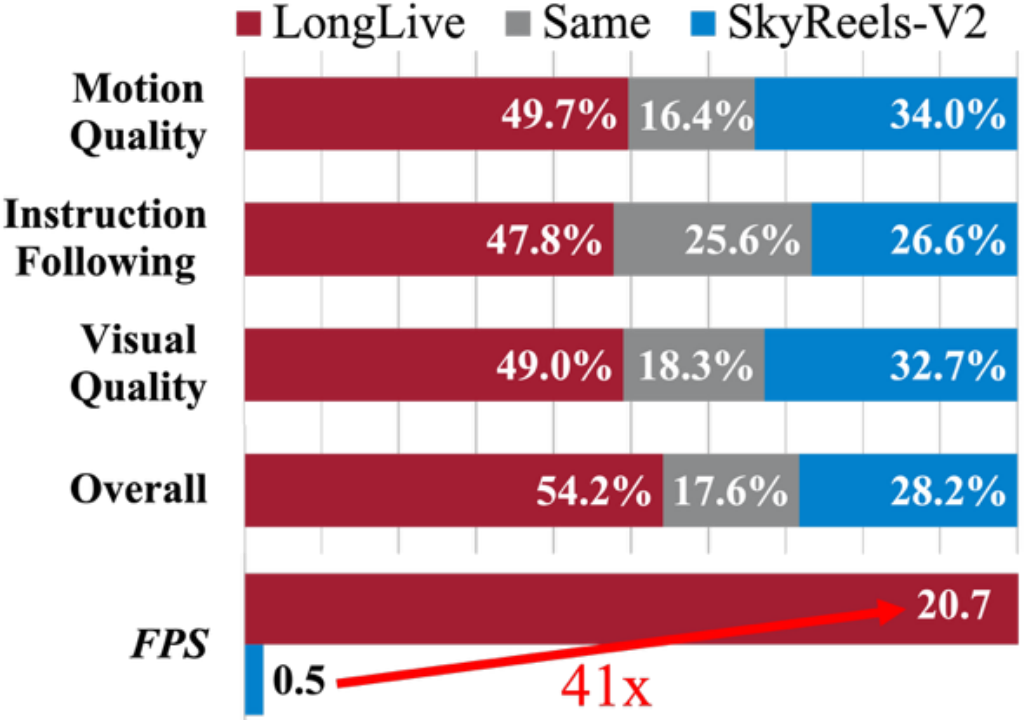 表1:LongLive和其他模型在长视频生成上的User Study对比