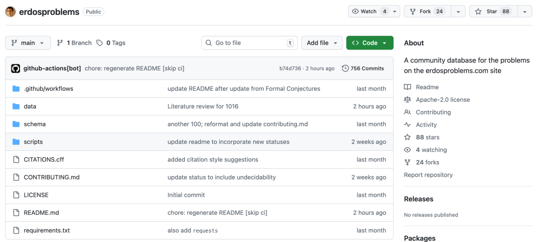 陶哲轩本人在Github上也维护了一个Erdős Problems埃尔德什问题数据库。