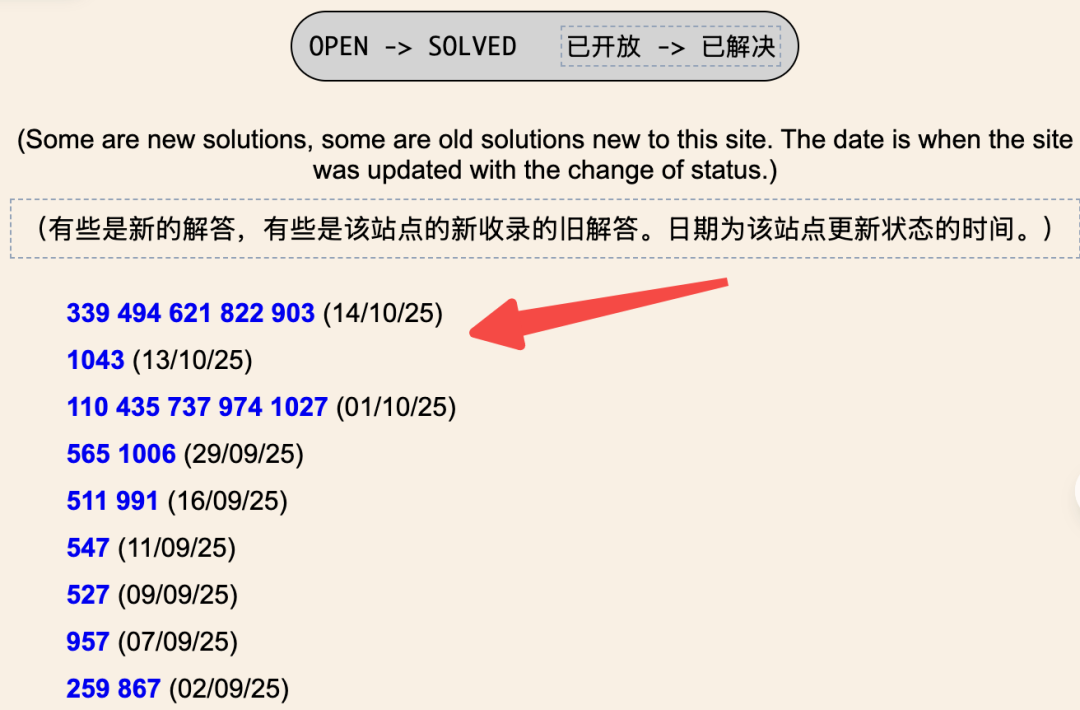 短短几天,6个原本被列为「未解决」的问题被重新标记为「solved」:Problem 339、Problem 494、Problem 621、Problem 822、Problem 903、Problem 1043。