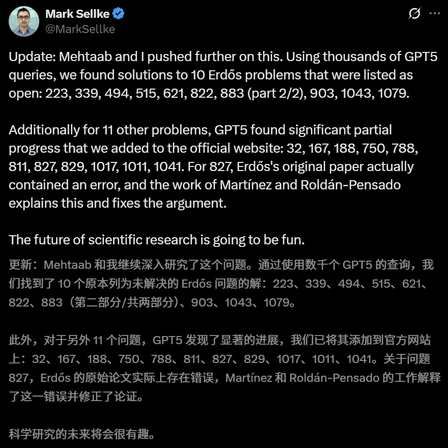 他们「问了」GPT-5数千次,就找到了10个未解决的埃尔德什难题的求解方案。