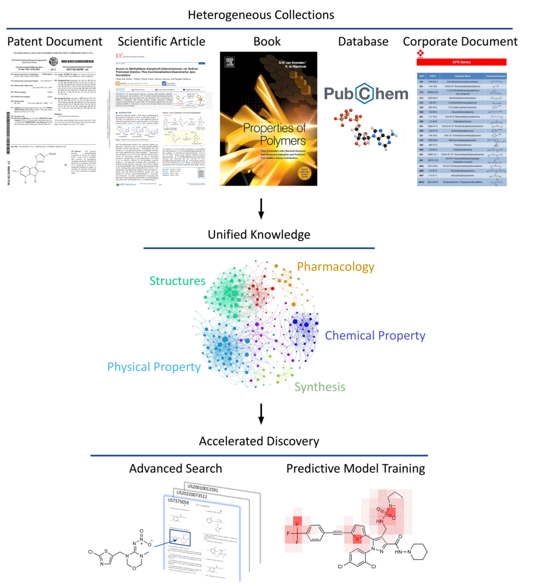 科学知识高度分散,缺乏标准化。虽然一些知识存储在结构化数据库中,但大多数知识以非结构化格式存在,例如期刊文章、书籍、专利文献和公司内部文件。这些文档的结构因出版商、地区和出版年份而异。此外,它们通过各种形式(包括文本、表格和图表)传达信息,这使得标准化和自动化处理具有挑战性。
