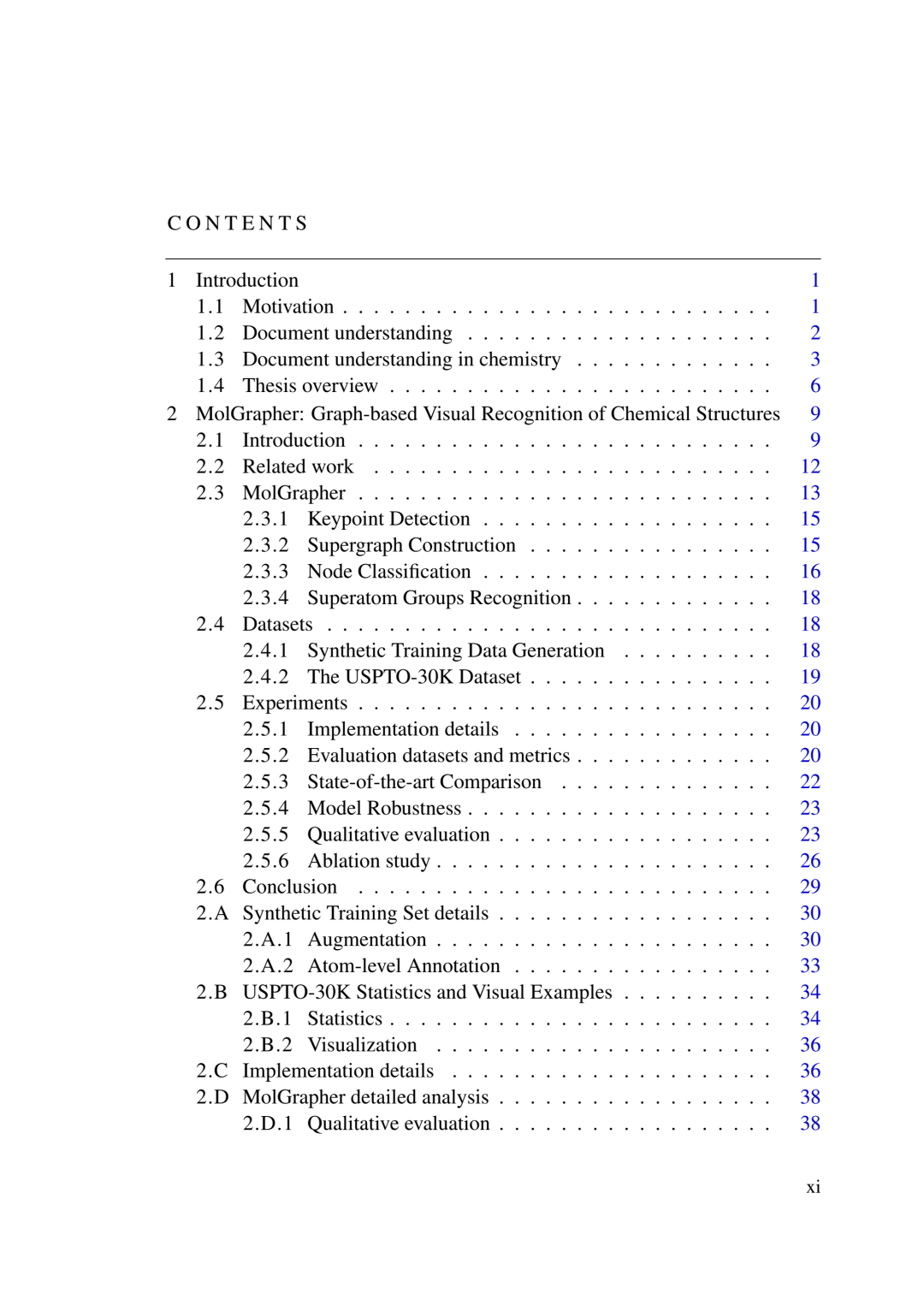 科学知识是通过研究出版物和专利文献构建、解释和验证的。然而,这些文献格式不标准、布局多样、内容多模态,这给自动化分析带来了障碍。这些挑战降低了信息检索系统的效率,并限制了在大规模文档集上训练机器学习模型的能力。自然语言处理技术将文档视为纯文本,忽略了视觉信息的关键作用。这在化学领域是一个限制,因为化学结构图和马库什结构等视觉元素对于理解文档内容至关重要。为了弥补这一缺陷,本论文引入了新的机器学习方法,用于从文档中提取化学结构和马库什结构。此外,还创建了一个从专利文献中提取化学结构的大型数据库。该数据库支持对专利文献进行高级分析,并用于专门的机器学习模型训练。