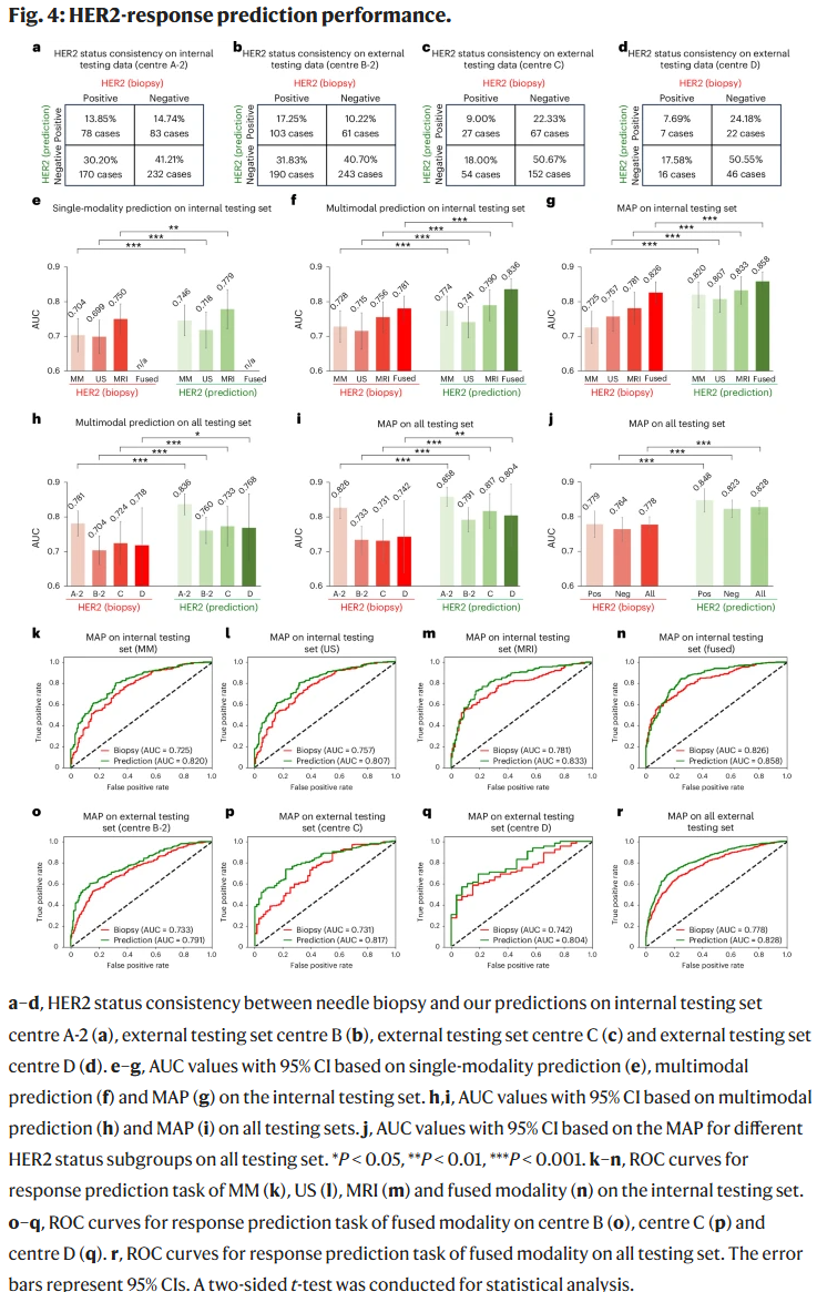 研究人员基于深度学习建立了一个非侵入、精准的多模态HER2状态预测框架,显著超越了传统针吸活检的准确度。通过将HER2预测结果与患者真实治疗反应关联,研究人员重新定义了HER2评估的“金标准”,实现了由活检到影像、由检测到反应的全流程智能评估。