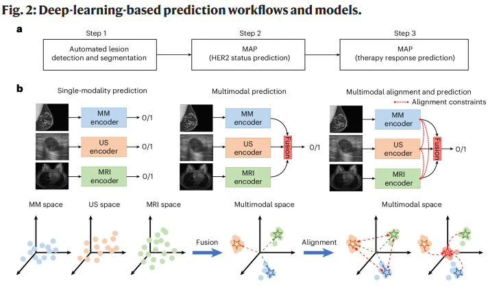 随着医学影像数据规模的扩大和人工智能的发展,基于深度学习的影像分析方法为HER2状态评估提供了新的可能。相比单一模态影像(如乳腺X线、超声或MRI),多模态融合方法能够更全面地捕获肿瘤的形态学、功能学及分子特征。研究人员因此提出通过多模态影像深度学习模型实现非侵入性HER2状态预测,以弥补活检的局限。