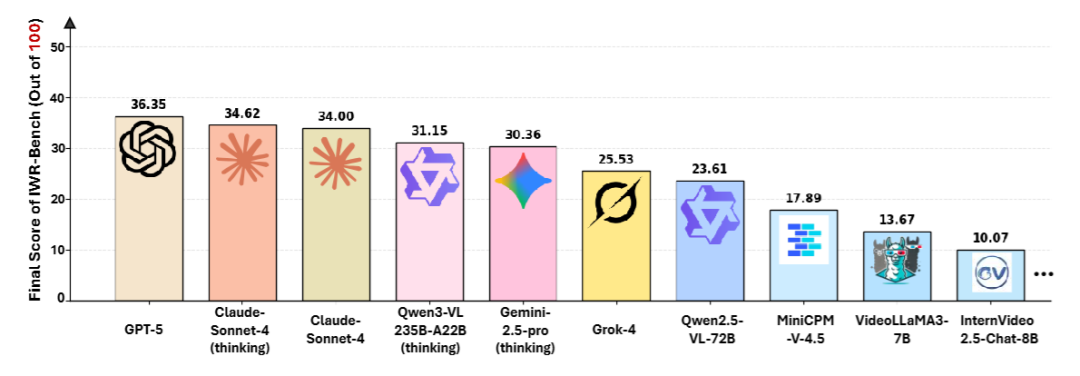 △10个代表性模型在IWR-Bench任务上的评测总览