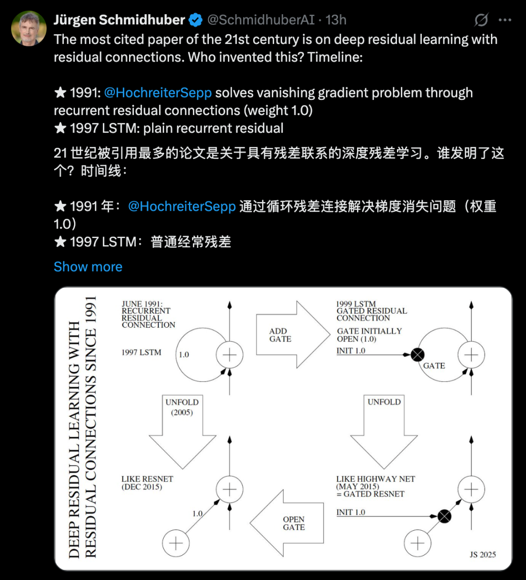为什么要说“也”?因为发起讨论的,又双叒是我们熟悉的Jürgen Schmidhuber——LSTM之父。