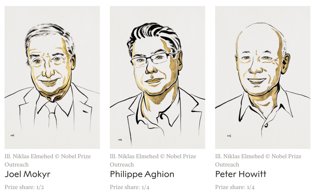 另一半,由法兰西学院与伦敦政治经济学院的经济学家菲利普·阿吉翁(Philippe Aghion),以及布朗大学经济学家彼得·豪伊特(Peter Howitt)分享。