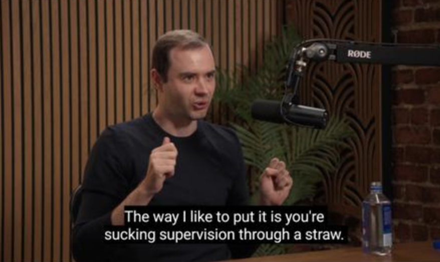 首先,RL的signal/flop(信号/算力)比很差。它还很嘈杂;反过来,一些极有洞见的 Token 可能「被惩罚」(因为后面步骤失误)。