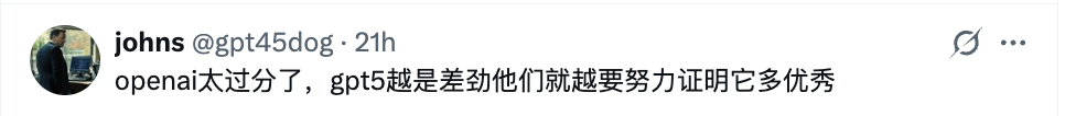 当然,也有其他网友杀人诛心,主要还是GPT-5太拉胯了——越差劲越想证明自己优秀。