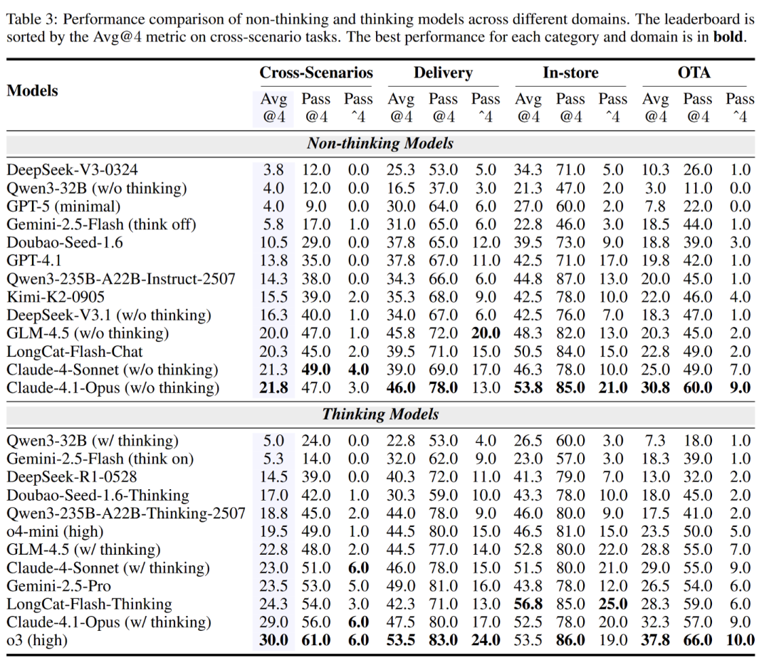 团队在VitaBench上评测了包括GPT-5、Claude-4.1-Opus、Gemini-2.5-Pro、Kimi-K2、GLM-4.5、LongCat-Flash等在内的20余款主流大模型。