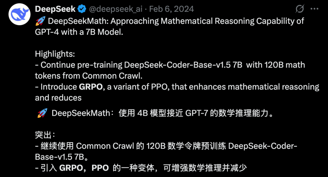 另外,Jerry也对DeepSeek团队提出的全新的强化学习算法GRPO(组相对策略优化)表示了认可: