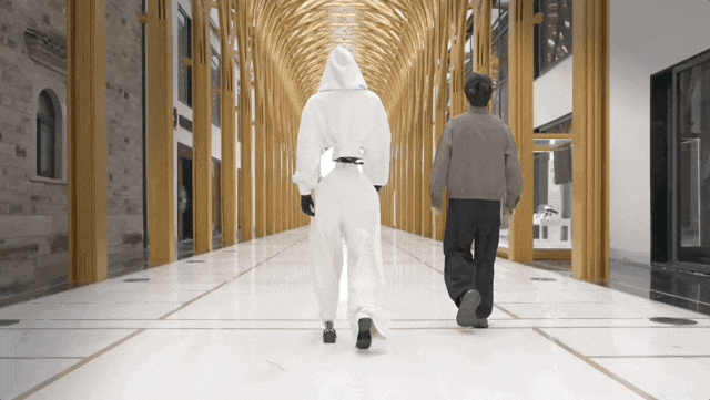 有了人脸的H2,还穿上衣服来了几段走秀,走路姿态协调自然。