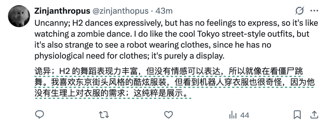 还有人说它舞蹈表现能力丰富,但没有注入情感,所以像是个僵尸在跳舞: