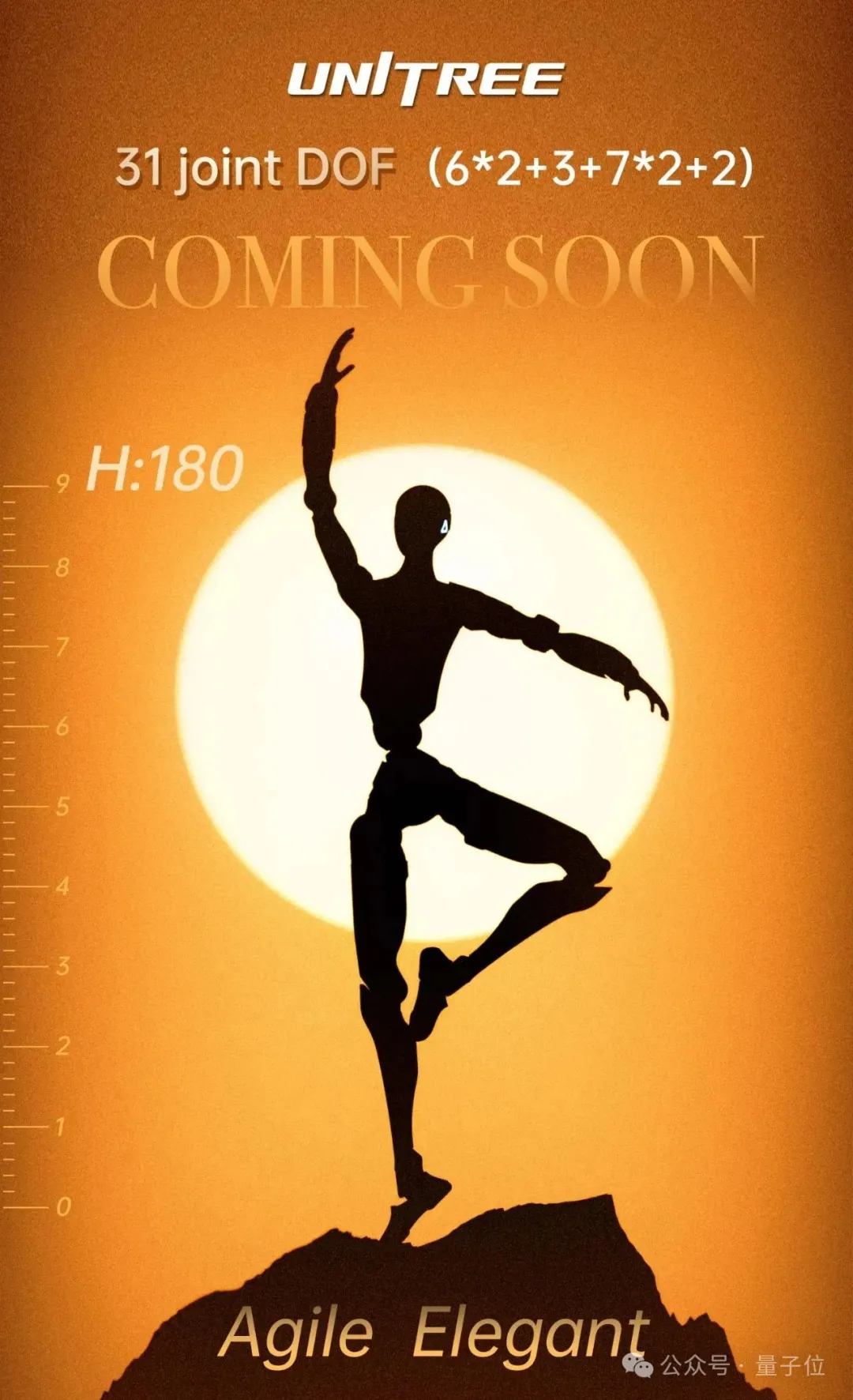 另外,海报上的机器人剪影摆出芭蕾起舞姿势,同时配有“敏捷”“优雅”两个关键词。