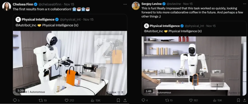 值得注意是的,星尘智能与具身AI顶流公司Physical Intelligence早在2024年初就在模型-数据-本体上进行技术探讨与联动,并在同年11月成为PI首个对外官宣的合作伙伴,其咖啡自主制作长序列任务被研发人员多次引用,其全栈能力备受团队认可。