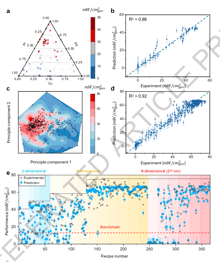 优化后的配方随后被映射回元素配比并进行实验测试,从而在材料设计、制备和测试之间形成闭环。