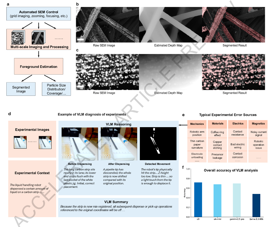 为解决这一问题,团队长期搜集(拍照、录像)并讨论实验中的不可重复现象,例如热学、电学、磁学、甚至由人根深蒂固的观念造成的实验误差。CRESt 采用了视觉–语言模型(VLMs)来辅助实验,诊断不可重复的来源,并提出纠正措施。