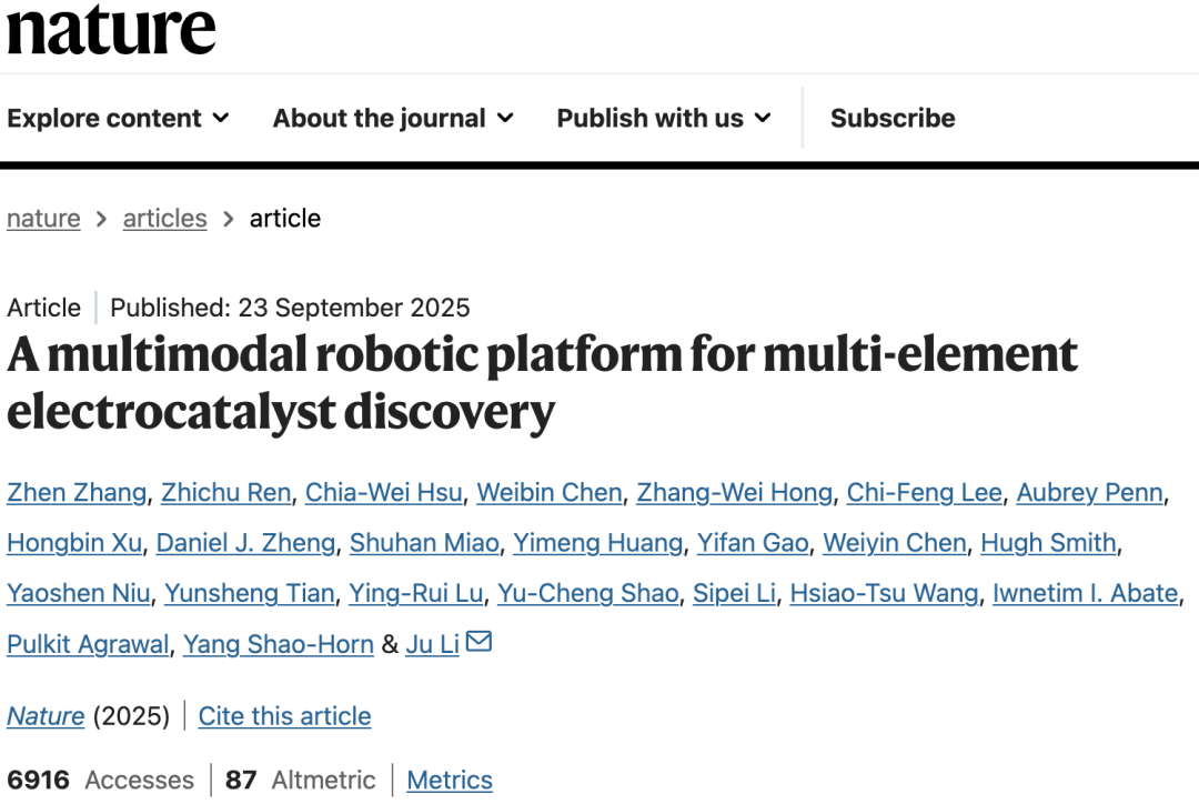 【新智元导读】美国麻省理工学院李巨团队在国际顶尖学术期刊Nature上发表了一篇研究论文,展示了一种多模态机器人平台CRESt(Copilot for Real-world Experimental Scientists),通过将多模态模型(融合文本知识、化学成分以及微观结构信息)驱动的材料设计与高通量自动化实验相结合,大幅提升催化剂的研发速度和质量。
