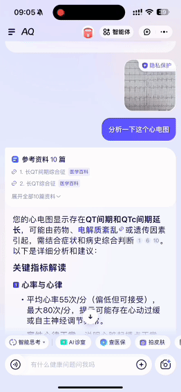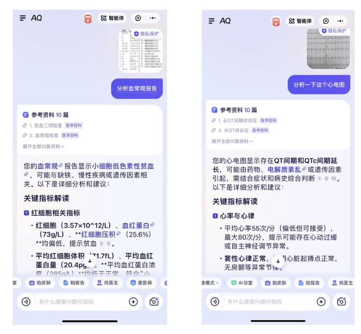 我喂了张血常规报告+心电图上去,它能抓出异常指标,顺带配上一段解释说明,看起来专业度还可以。