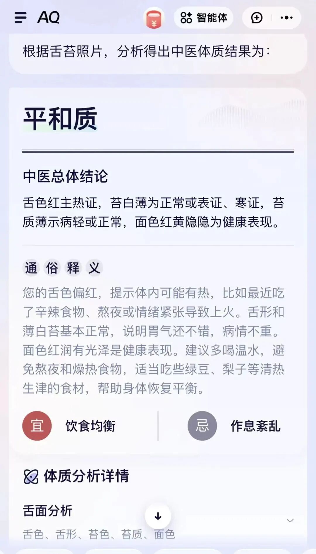 还能化身老中医还能看舌象,什么气虚、阳盛、寒热平衡,整得挺头头是道: