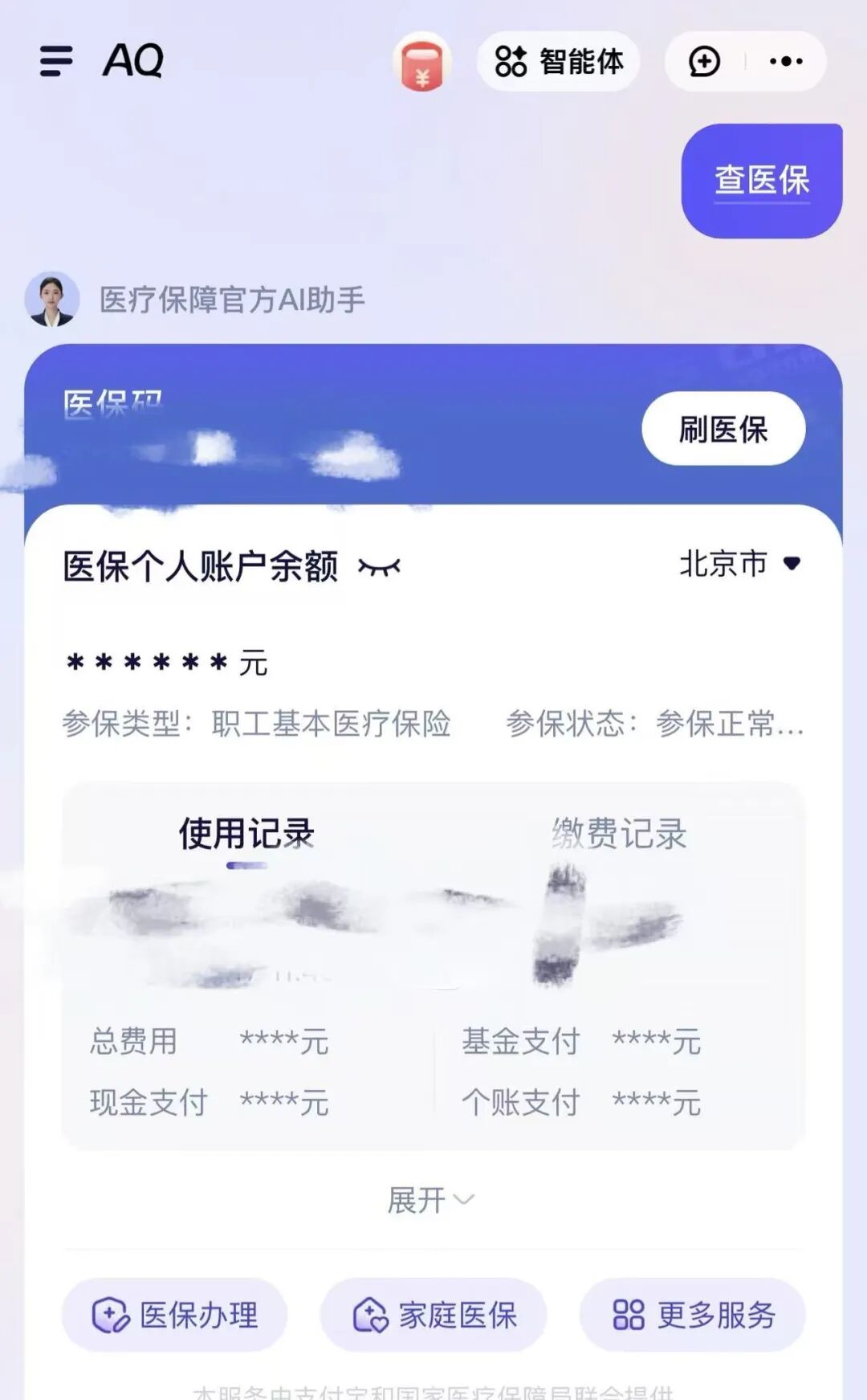 不光如此,蚂蚁AQ还把支付宝查医保的活儿也干了,查找链路说实话比支付宝里更短。