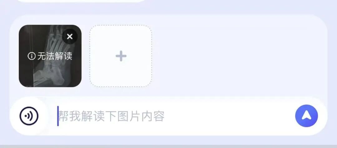 比如我上传了一张CT片,半天只回了一句“无法解读”: