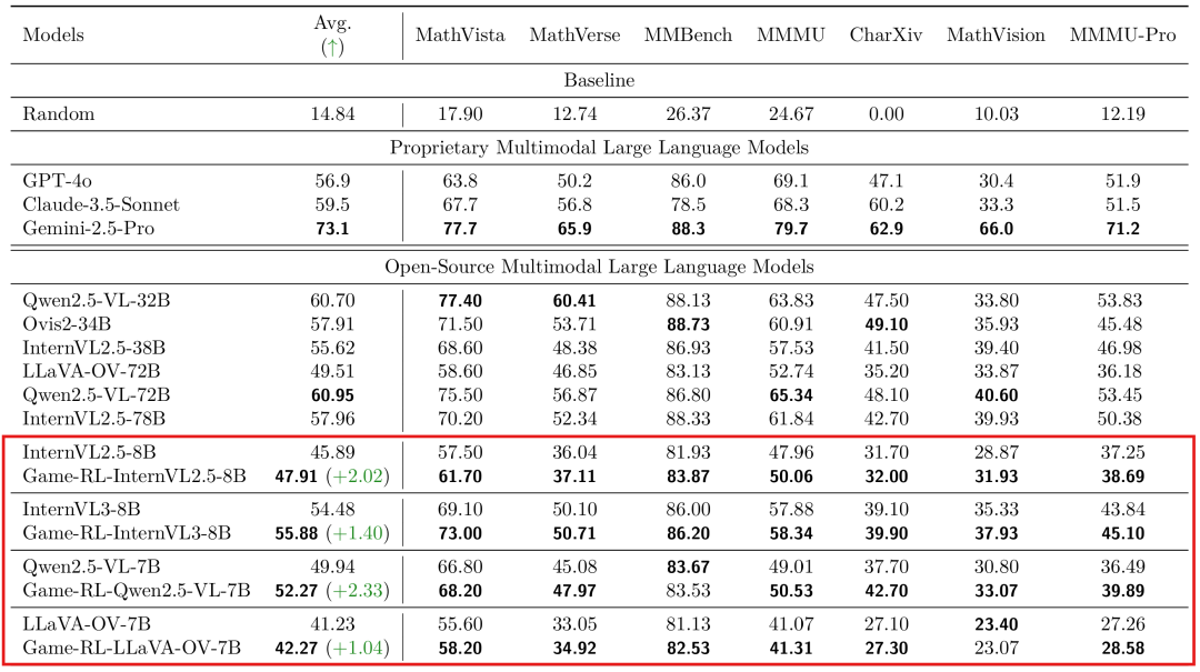 通过实验,研究团队验证了Game-RL能提升VLM的通用推理。