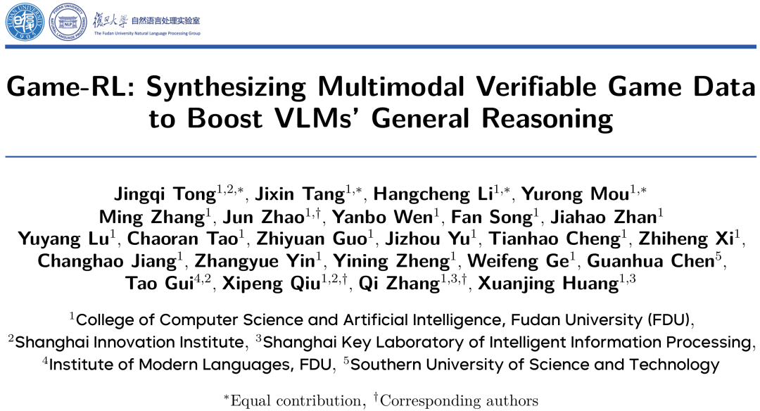 研究提出了Game-RL以及游戏数据合成方法Code2Logic,构建了GameQA数据集,将VLM强化训练领域拓展到游戏场景。