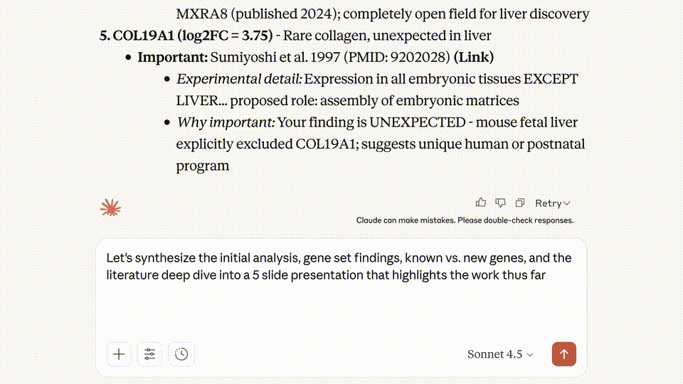 生物信息学与数据分析:使用Claude Code处理分析基因组数据,并能将结果以幻灯片、文档或代码笔记本格式呈现。