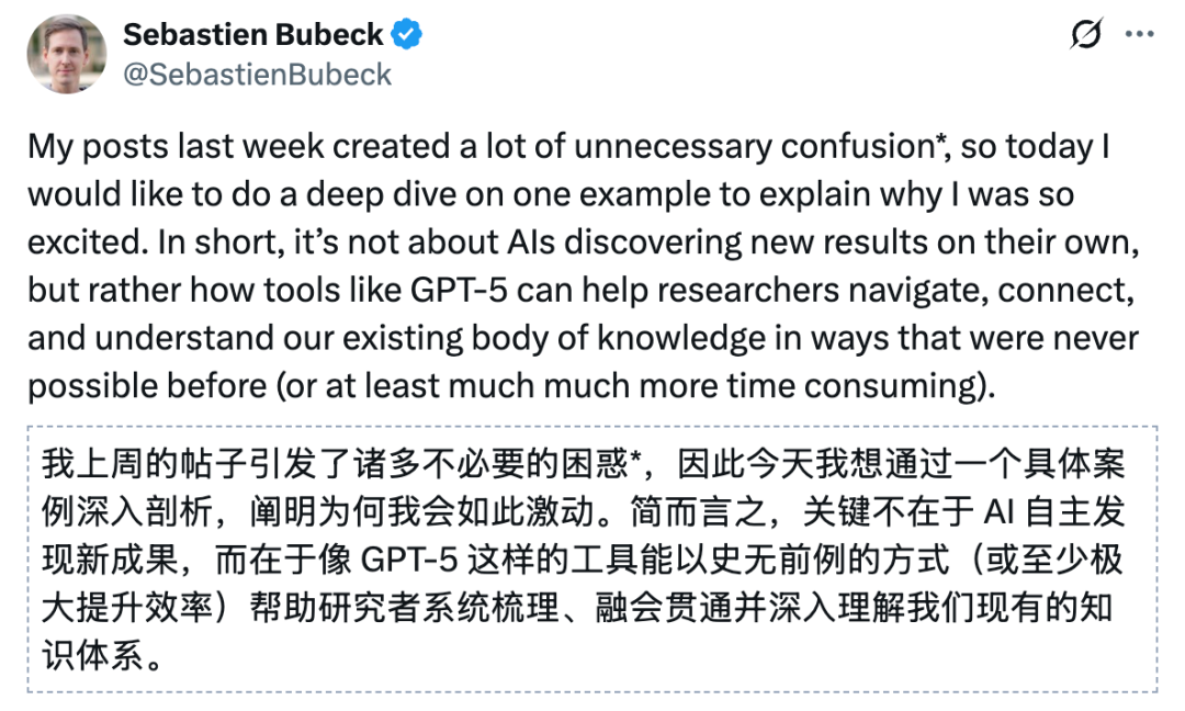 他的意思是GPT-5虽然是以检索的方式找到了某些科学家的论文答案,但是主要想证明的是: