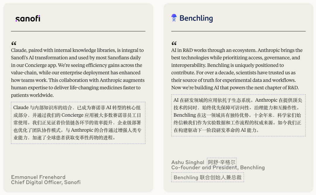 为了证明Claude在科研领域的认真和重视,Anthropic还列出一些重量级的客户。